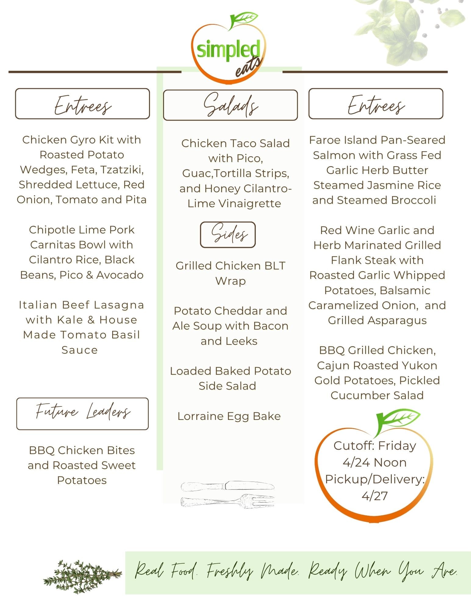 I have been ordering meals from Simpled Eats for every week for almost 6 months now, and have had consistently good tasting and healthy meals, great customer service, and timely delivery. I have three young children and have found that by the time we get back home from school and extracurriculars, do homework, then prep and cook dinner, eat, and then clean up, I am sending the kids to bed without spending any quality time with them. Simpled Eats has been the solution for getting family time back for us. Ordering online is easy and done once per week, I order on average four meals (two delivered Monday, and two more delivered Wednesday). The meals are made with quality fresh ingredients, and prepared in a tasty, yet healthy way. The meals are also incredibly affordable, probably ending up to cost less than if I were left on my own to meal plan and prepare. The chef has personally called me back when I have had questions, and did so in a timely manner. I cannot recommend this service enough. For a busy family, Simpled Eats has been a lifesaver.